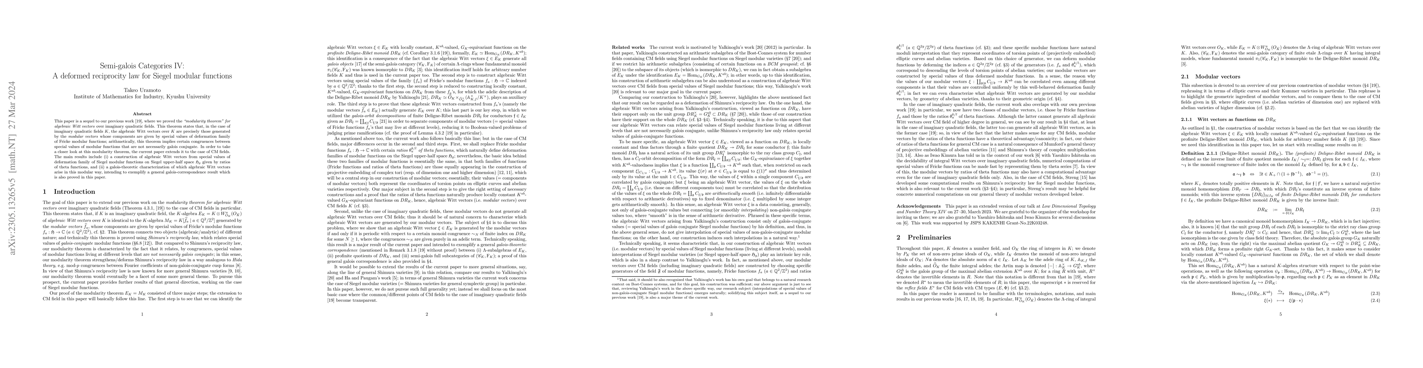 This paper is a sequel to our previous work, where we proved the ``modularity theorem'' for algebraic Witt vectors over imaginary quadratic fields. This theorem states that, in the case of imaginary quadratic fields $K$, the algebraic Witt vectors over $K$ are precisely those generated by the modular vectors whose components are given by special values of deformation family of Fricke modular functions; arithmetically, this theorem implies certain congruences between special values of modular functions that are not necessarily galois conjugate. In order to take a closer look at this modularity theorem, the current paper extends it to the case of CM fields. The main results include (i) a construction of algebraic Witt vectors from special values of deformation family of Siegel modular functions on Siegel upper-half space given by ratios of theta functions, and (ii) a galois-theoretic characterization of which algebraic Witt vectors arise in this modular way, intending to exemplify a general galois-correspondence result which is also proved in this paper.
