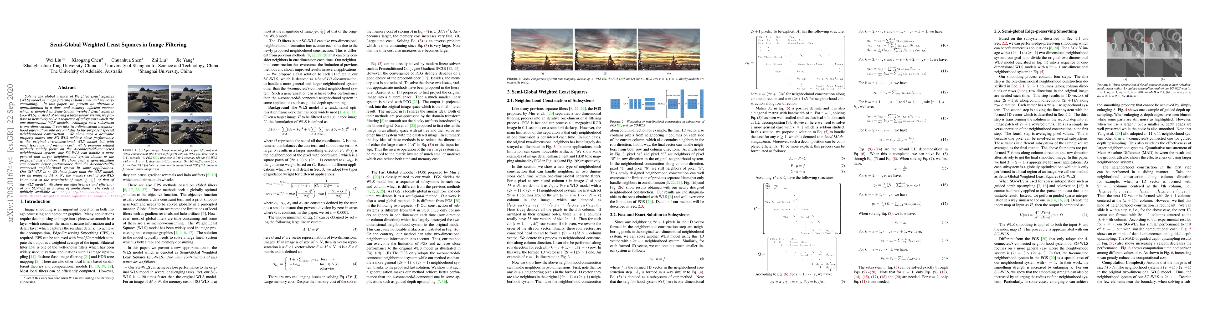 This paper proposes Semi-Global Weighted Least Squares (SG-WLS) for efficient image filtering, which iteratively solves one-dimensional subsystems instead of a large linear system, achieving comparable performance with much lower time and memory costs compared to traditional Weighted Least Squares (WLS). The method generalizes beyond 4-connected/8-connected neighborhoods, demonstrating better performance in some applications.