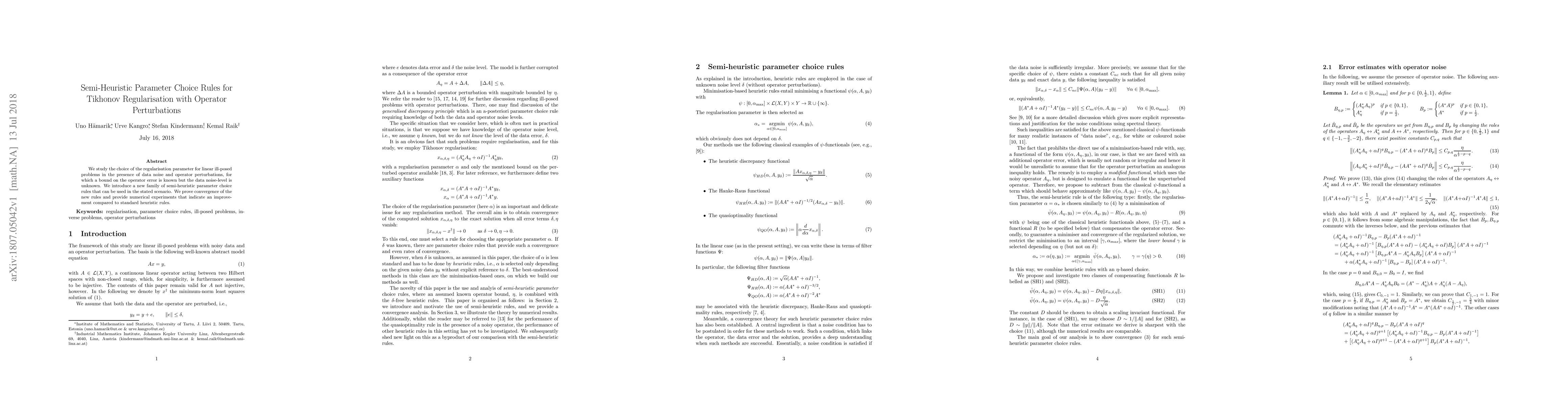 This paper introduces semi-heuristic parameter choice rules for Tikhonov regularisation in linear ill-posed problems with known operator error bounds but unknown data noise levels. The new rules are proven to converge and show improved performance over standard heuristics in numerical experiments.