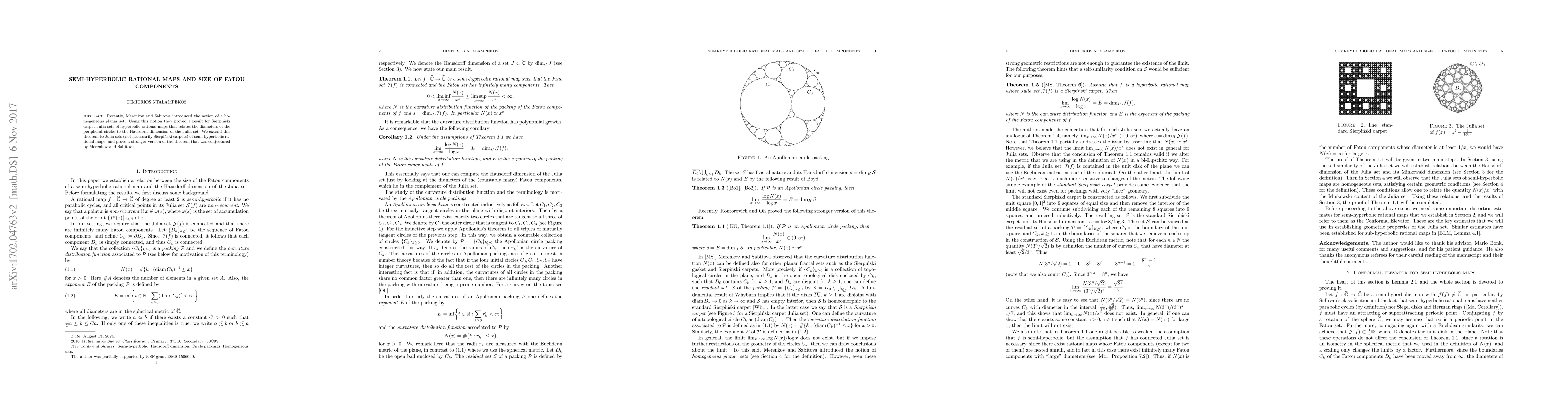 Recently Merenkov and Sabitova introduced the notion of a homogeneous planar set. Using this notion they proved a result for Sierpi${\'n}$ski carpet Julia sets of hyperbolic rational maps that relates the diameters of the peripheral circles to the Hausdorff dimension of the Julia set. We extend this theorem to Julia sets (not necessarily Sierpi${\'n}$ski carpets) of semi-hyperbolic rational maps, and prove a stronger version of the theorem that was conjectured by Merenkov and Sabitova.
