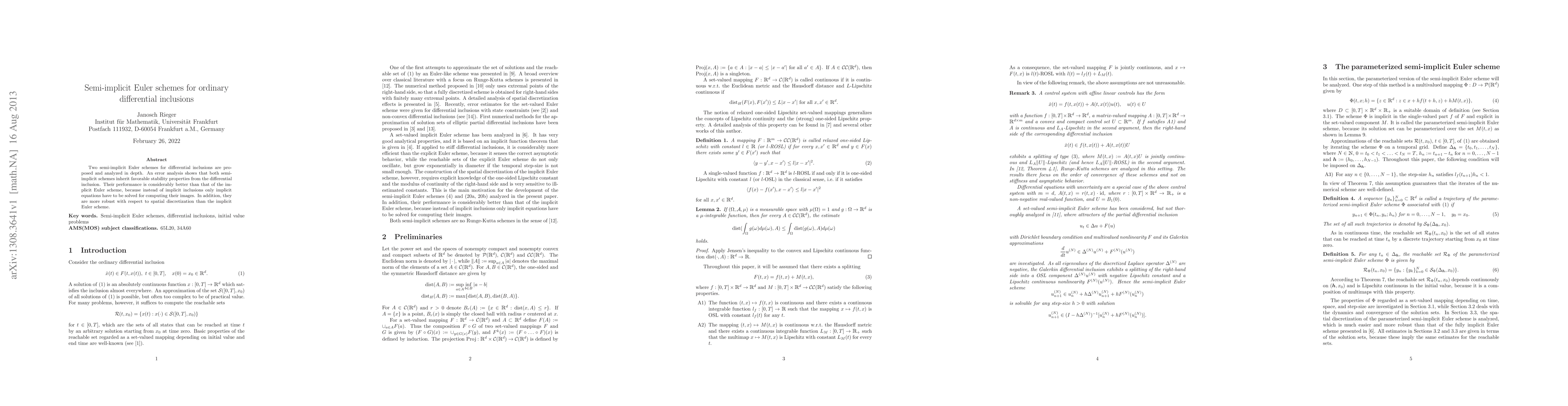 The paper proposes and analyzes two semi-implicit Euler schemes for ordinary differential inclusions, demonstrating their stability properties and superior performance compared to the implicit Euler scheme.