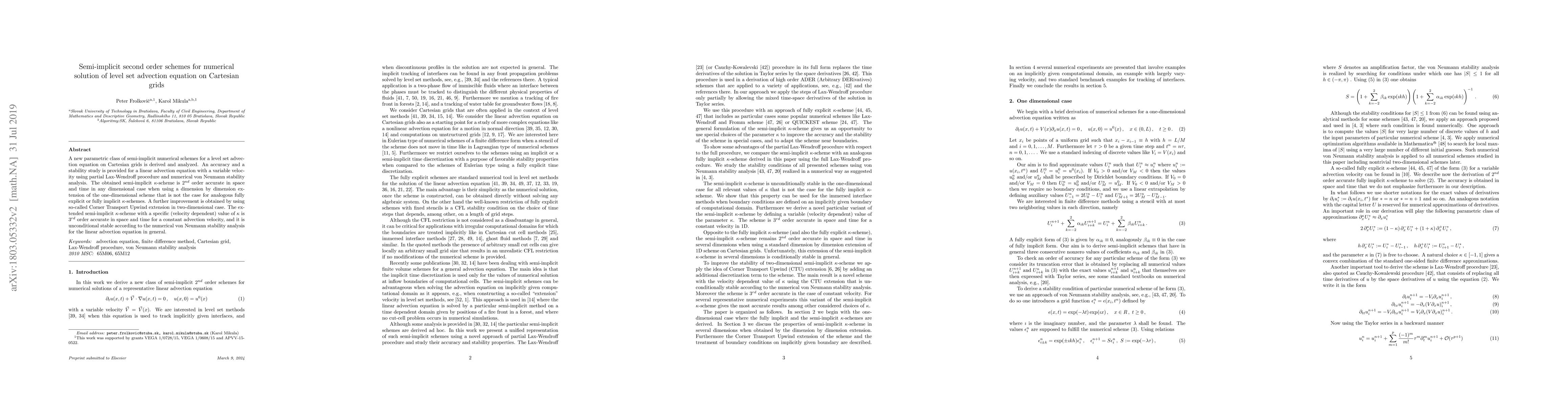 This paper introduces a new class of semi-implicit second-order schemes for solving the level set advection equation on Cartesian grids, achieving second-order accuracy in space and time. The schemes are shown to be unconditionally stable and can be further enhanced to third-order accuracy in two dimensions under specific conditions.
