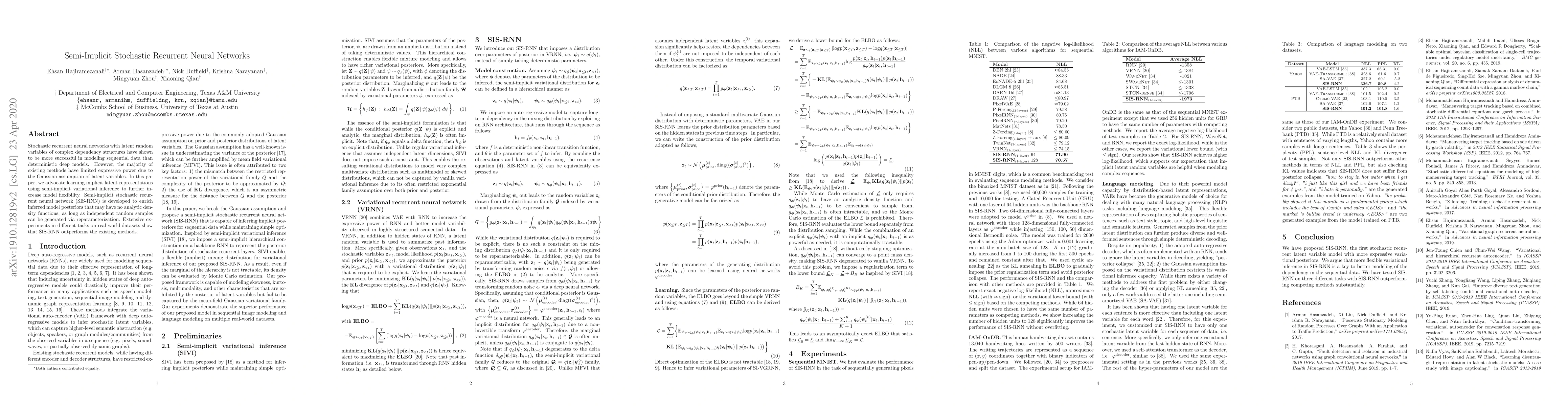 This paper introduces the Semi-Implicit Stochastic Recurrent Neural Network (SIS-RNN) to enhance the modeling of sequential data by learning implicit latent representations through semi-implicit variational inference, outperforming existing methods on real-world datasets. The model's flexibility is increased by avoiding the Gaussian assumption of latent variables.