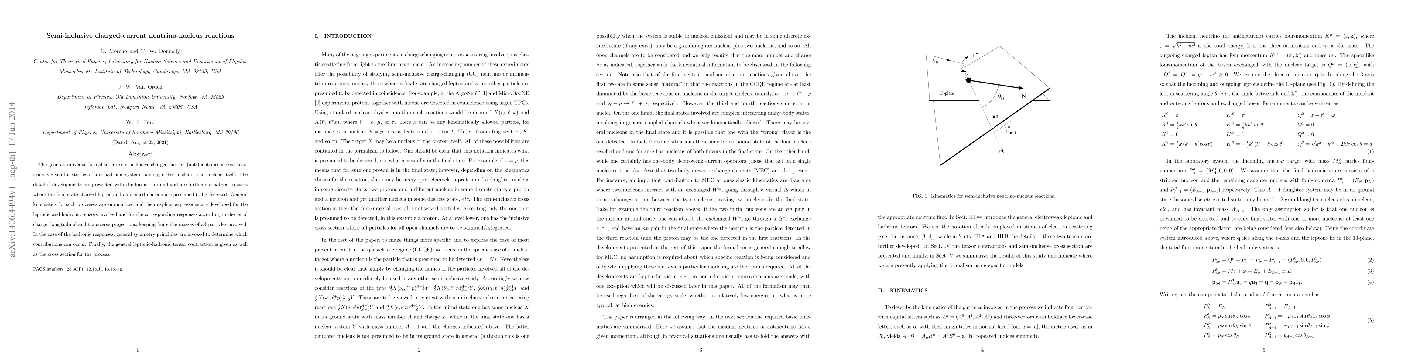 The general, universal formalism for semi-inclusive charged-current (anti)neutrino-nucleus reactions is given for studies of any hadronic system, namely, either nuclei or the nucleon itself. The detailed developments are presented with the former in mind and are further specialized to cases where the final-state charged lepton and an ejected nucleon are presumed to be detected. General kinematics for such processes are summarized and then explicit expressions are developed for the leptonic and hadronic tensors involved and for the corresponding responses according to the usual charge, longitudinal and transverse projections, keeping finite the masses of all particles involved. In the case of the hadronic responses, general symmetry principles are invoked to determine which contributions can occur. Finally, the general leptonic-hadronic tensor contraction is given as well as the cross section for the process.