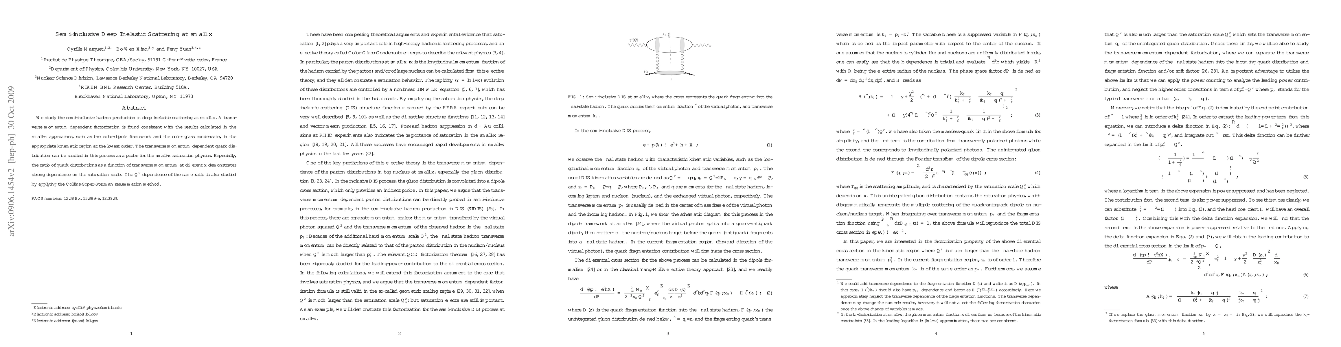 This paper explores semi-inclusive hadron production in deep inelastic scattering at low $x$, establishing a transverse momentum dependent factorization consistent with small-$x$ theories. It investigates the transverse momentum dependent quark distribution as a probe for small-$x$ saturation physics, revealing strong dependence on the saturation scale and applying the Collins-Soper-Sterman resummation method for $Q^2$ dependence.
