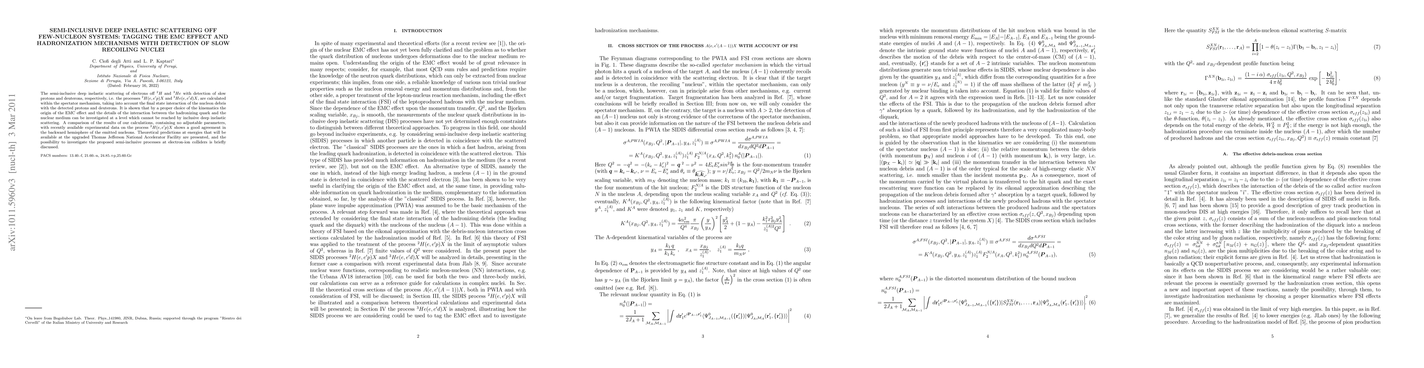 This paper investigates semi-inclusive deep inelastic scattering off deuterons and helium-3, focusing on tagging the EMC effect and hadronization mechanisms through the detection of slow recoiling nucleons. Theoretical calculations show good agreement with experimental data and propose future studies at the Thomas Jefferson National Accelerator Facility and electron-ion colliders.