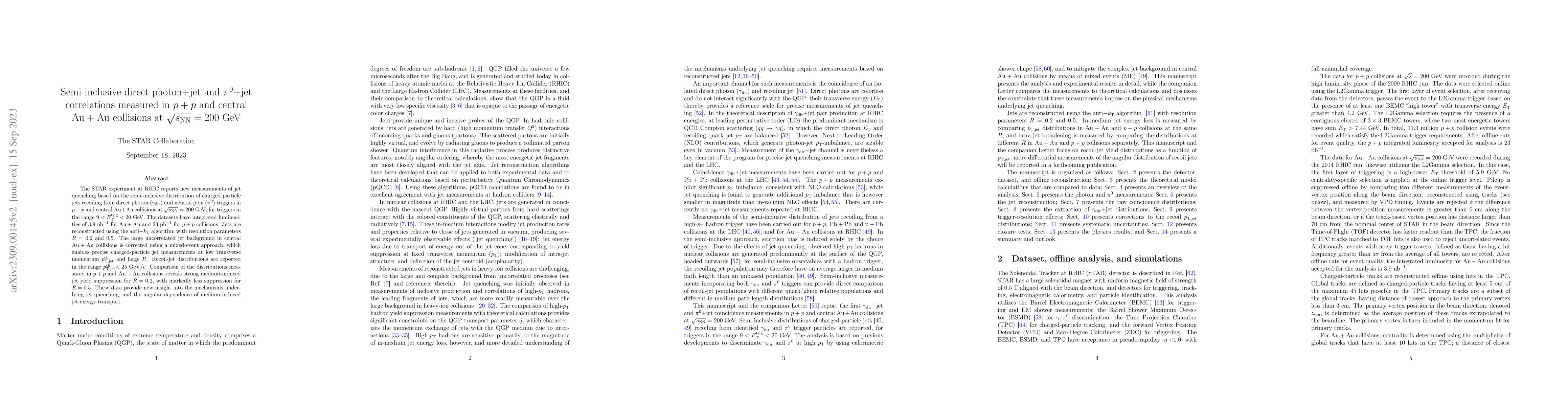 The STAR experiment at RHIC measures semi-inclusive direct photon+jet and $\pi^{0}$+jet correlations in $p+p$ and central Au+Au collisions at $\sqrt{s_\mathrm{NN}} = 200$ GeV, revealing significant jet quenching in the latter, with more suppression for smaller jet resolutions. This provides new insights into jet quenching mechanisms and energy transport.