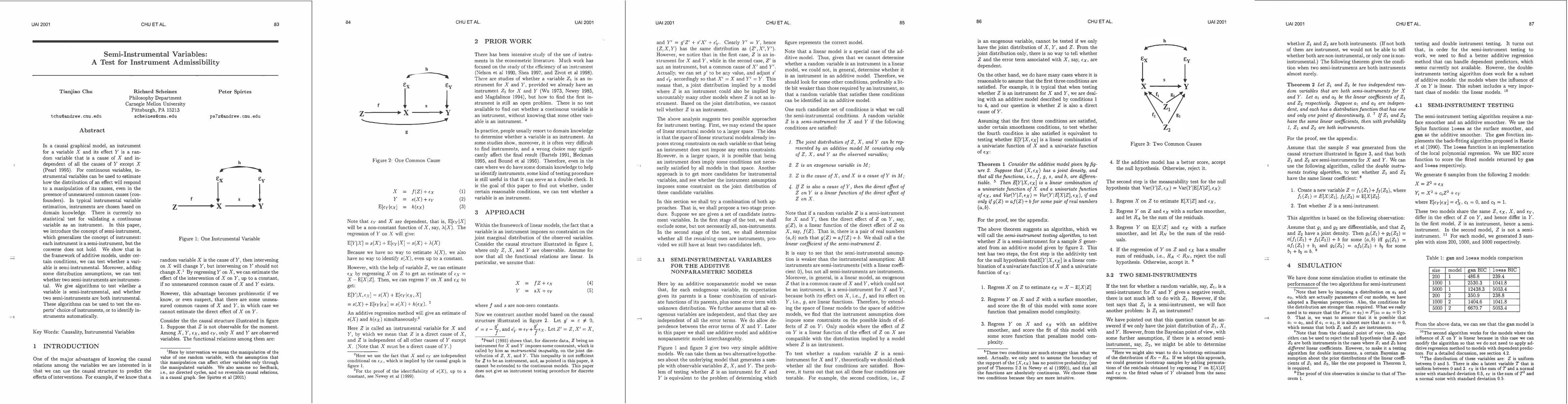 In a causal graphical model, an instrument for a variable X and its effect Y is a random variable that is a cause of X and independent of all the causes of Y except X. (Pearl (1995), Spirtes et al (2000)). Instrumental variables can be used to estimate how the distribution of an effect will respond to a manipulation of its causes, even in the presence of unmeasured common causes (confounders). In typical instrumental variable estimation, instruments are chosen based on domain knowledge. There is currently no statistical test for validating a variable as an instrument. In this paper, we introduce the concept of semi-instrument, which generalizes the concept of instrument. We show that in the framework of additive models, under certain conditions, we can test whether a variable is semi-instrumental. Moreover, adding some distribution assumptions, we can test whether two semi-instruments are instrumental. We give algorithms to estimate the p-value that a random variable is semi-instrumental, and the p-value that two semi-instruments are both instrumental. These algorithms can be used to test the experts' choice of instruments, or to identify instruments automatically.