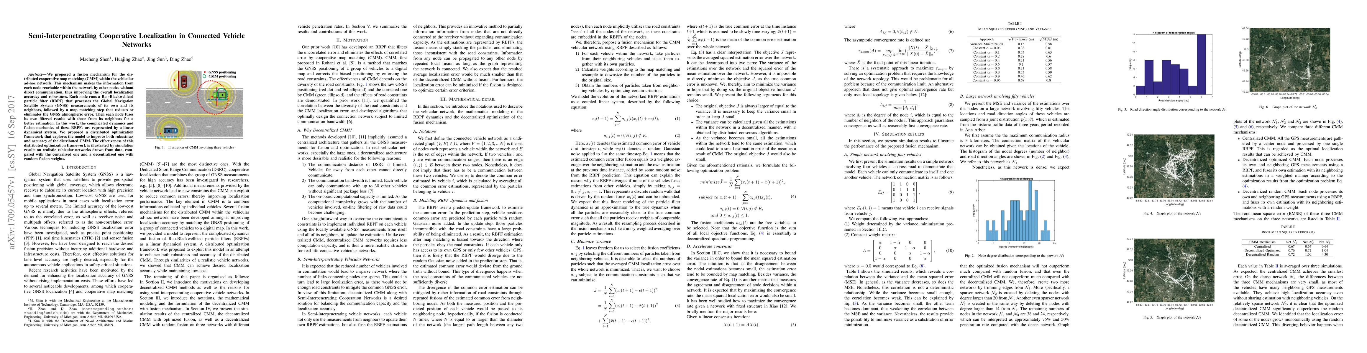 We proposed a fusion mechanism for the distributed cooperative map matching (CMM) within the vehicular ad-hoc network. This mechanism makes the information from each node reachable within the network by other nodes without direct communication, thus improving the overall localization accuracy and robustness. Each node runs a Rao-Blackwellized particle filter (RBPF) that processes the Global Navigation Satellite System (GNSS) measurements of its own and its neighbors, followed by a map matching step that reduces or eliminates the GNSS atmospheric error. Then each node fuses its own filtered results with those from its neighbors for a better estimation. In this work, the complicated dynamics and fusion mechanics of these RBPFs are represented by a linear dynamical system. We proposed a distributed optimization framework that explores the model to improve both robustness and accuracy of the distributed CMM. The effectiveness of this distributed optimization framework is illustrated by simulation results on realistic vehicular networks drawn from data, compared with the centralized one and a decentralized one with random fusion weights.
