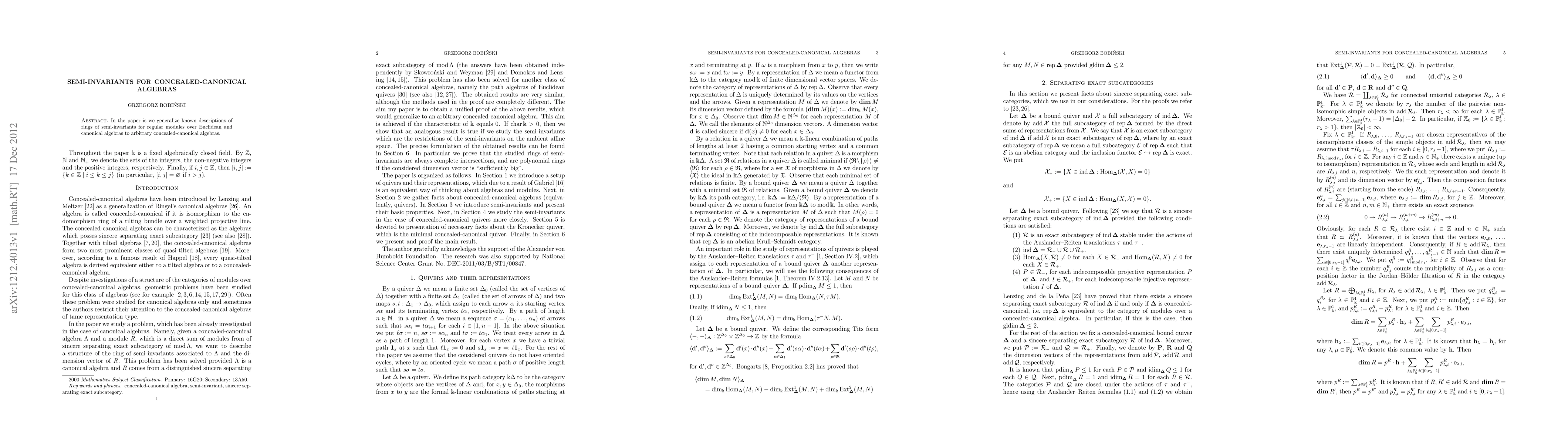 Summary: This paper extends the understanding of semi-invariants for regular modules over Euclidean and canonical algebras to concealed-canonical algebras, providing a generalized framework for these algebraic structures.