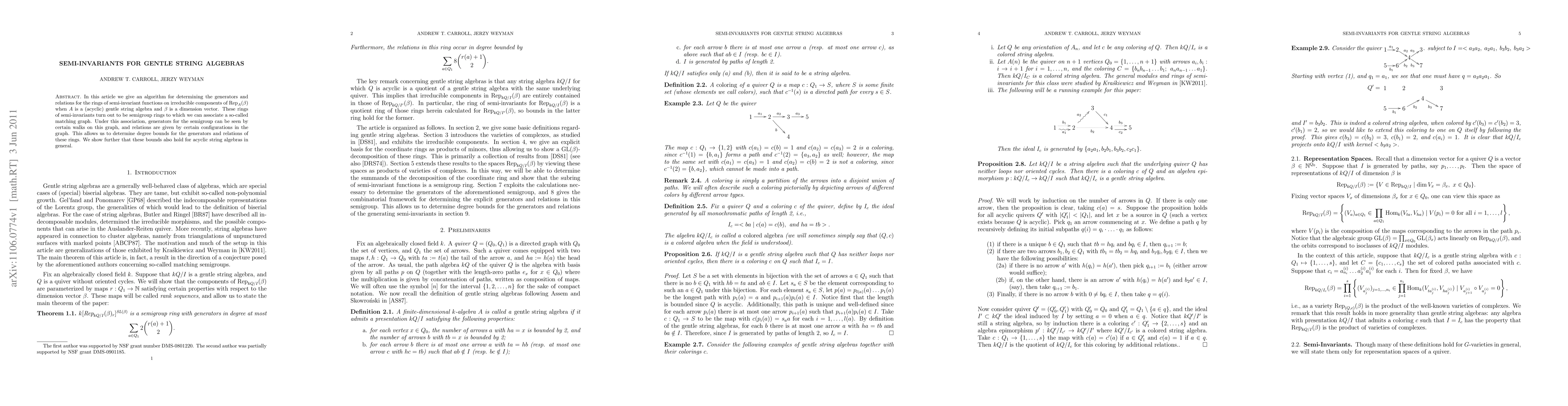 This paper presents an algorithm to determine the generators and relations for the rings of semi-invariant functions on representation spaces of gentle string algebras, revealing these rings as semigroup rings. The associated matching graph provides a visual method for identifying generators and relations, allowing for the determination of degree bounds applicable to acyclic string algebras in general.