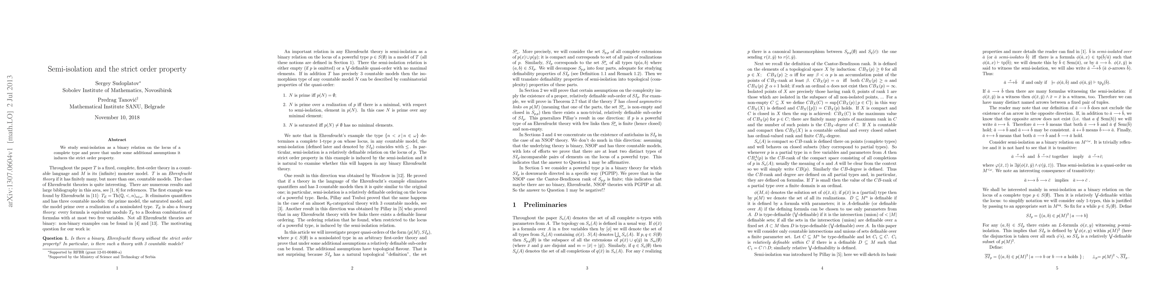We study semi-isolation as a binary relation on the locus of a complete type and prove that under some additional assumptions it induces the strict order property.