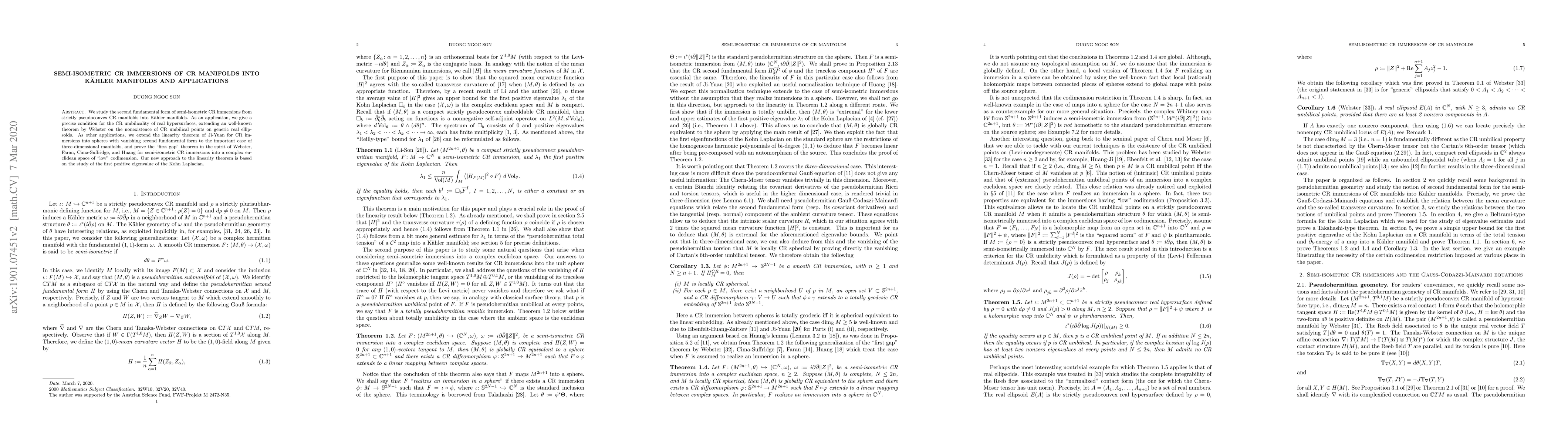 This paper investigates semi-isometric CR immersions of strictly pseudoconvex CR manifolds into Kähler manifolds, focusing on the second fundamental form and its implications. It extends Webster’s theorem on CR umbilicality and proves the "first gap" theorem for semi-isometric CR immersions, leveraging the first positive eigenvalue of the Kohn Laplacian.