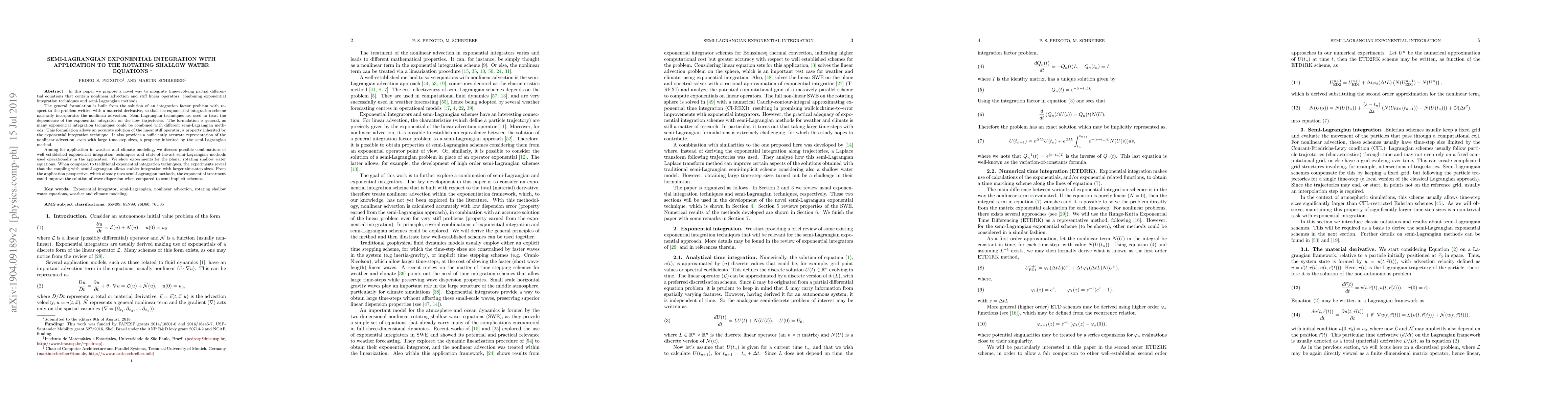 This paper proposes a novel integration method combining exponential integration techniques with semi-Lagrangian methods to solve nonlinear advection problems, resulting in stable solutions with larger time-step sizes compared to traditional methods.
