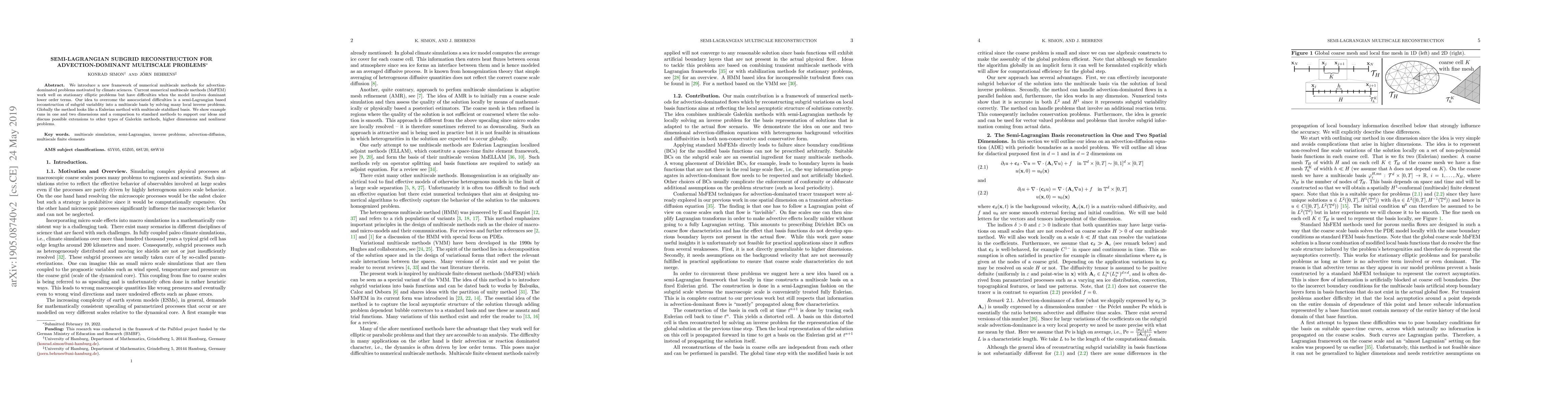 We introduce a new framework of numerical multiscale methods for advection-dominated problems motivated by climate sciences. Current numerical multiscale methods (MsFEM) work well on stationary elliptic problems but have difficulties when the model involves dominant lower order terms. Our idea to overcome the assocociated difficulties is a semi-Lagrangian based reconstruction of subgrid variablity into a multiscale basis by solving many local inverse problems. Globally the method looks like a Eulerian method with multiscale stabilized basis. We show example runs in one and two dimensions and a comparison to standard methods to support our ideas and discuss possible extensions to other types of Galerkin methods, higher dimensions and nonlinear problems.