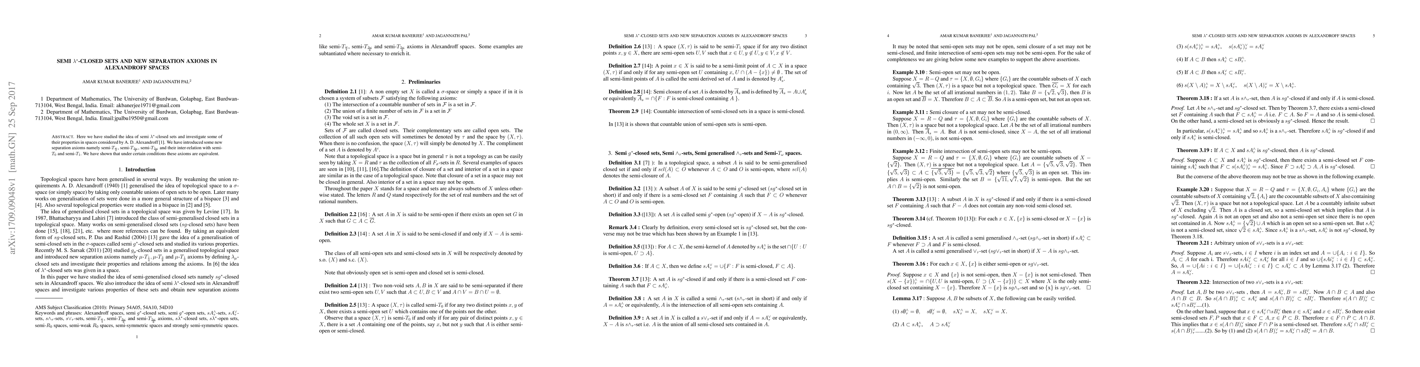 Here we have studied the idea of semi Lamda*-closed sets and investigate some of their properties in spaces considered by A. D. Alexandroff [1]. We have introduced some new separation axioms namely semi-Tw/4, , semi-T3w/8, semi-T5w/8, and their inter-relation with semi-T0 and semi-T1. We have shown that under certain conditions these axioms are equivalent.