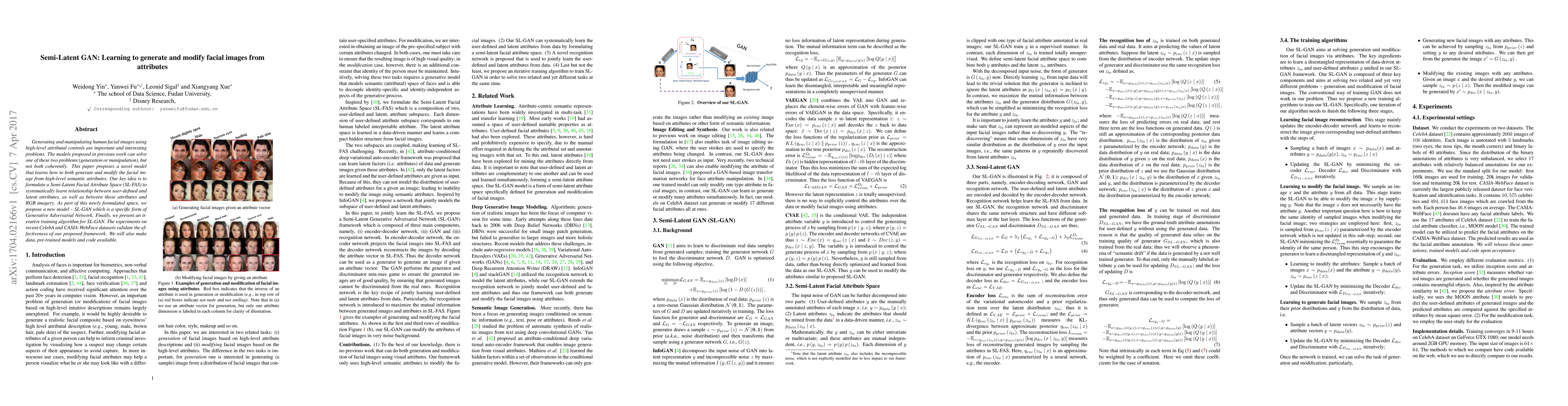 Generating and manipulating human facial images using high-level attributal controls are important and interesting problems. The models proposed in previous work can solve one of these two problems (generation or manipulation), but not both coherently. This paper proposes a novel model that learns how to both generate and modify the facial image from high-level semantic attributes. Our key idea is to formulate a Semi-Latent Facial Attribute Space (SL-FAS) to systematically learn relationship between user-defined and latent attributes, as well as between those attributes and RGB imagery. As part of this newly formulated space, we propose a new model --- SL-GAN which is a specific form of Generative Adversarial Network. Finally, we present an iterative training algorithm for SL-GAN. The experiments on recent CelebA and CASIA-WebFace datasets validate the effectiveness of our proposed framework. We will also make data, pre-trained models and code available.