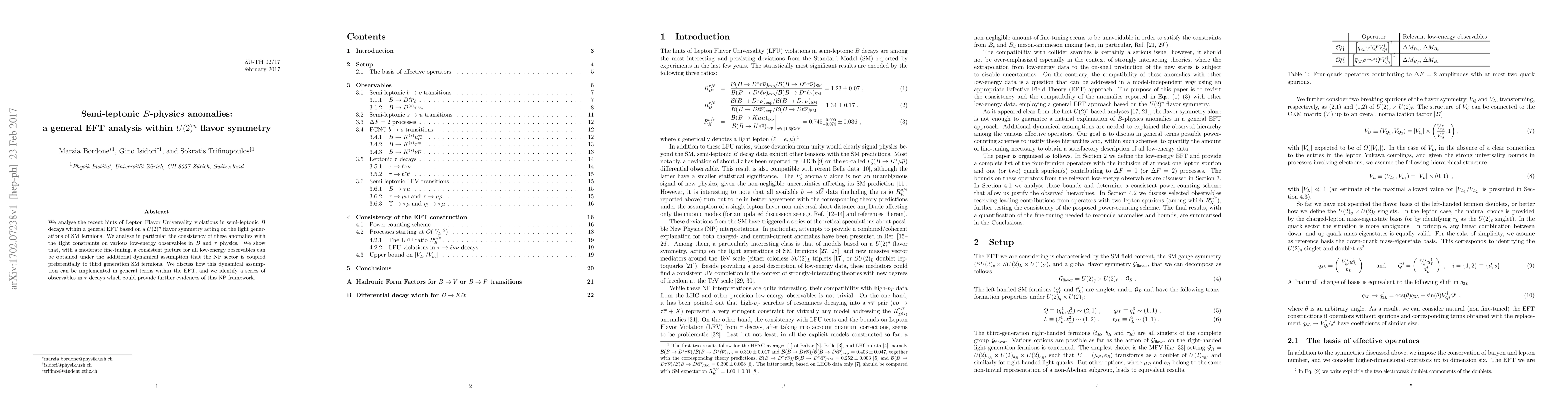 This paper investigates anomalies in semi-leptonic $B$ decays potentially violating Lepton Flavor Universality using a general Effective Field Theory (EFT) based on $U(2)^n$ flavor symmetry. It demonstrates that with moderate fine-tuning, these anomalies can be consistently explained by coupling the new physics sector preferentially to third-generation fermions, while satisfying constraints from $B$ and $\tau$ physics.