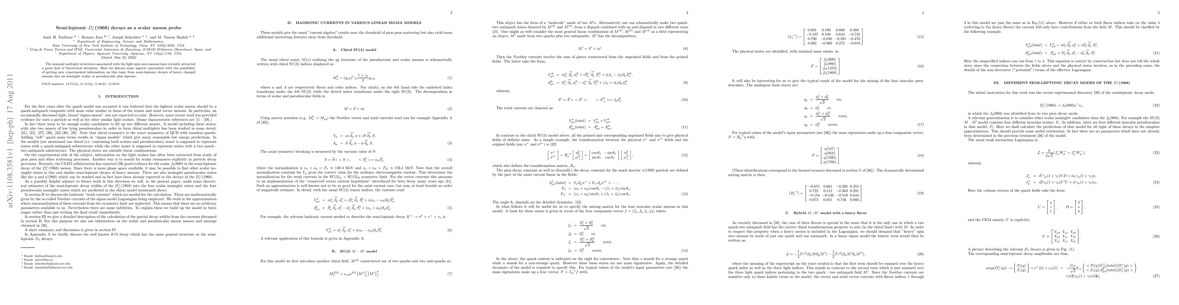The unusual multiplet structures associated with the light spin zero mesons have recently attracted a good deal of theoretical attention. Here we discuss some aspects associated with the possibility of getting new experimental information on this topic from semi-leptonic decays of heavy charged mesons into an isosinglet scalar or pseudoscalar plus leptons.