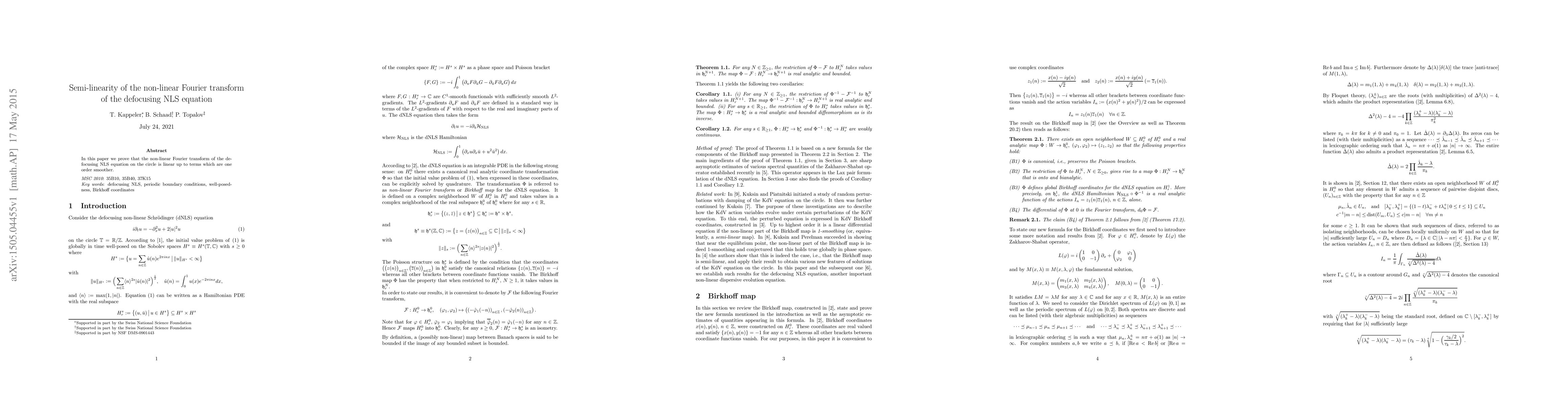 Summary: This paper demonstrates that the non-linear Fourier transform of the defocusing NLS equation on the circle exhibits linear behavior, with deviations being one order smoother than the primary transform.