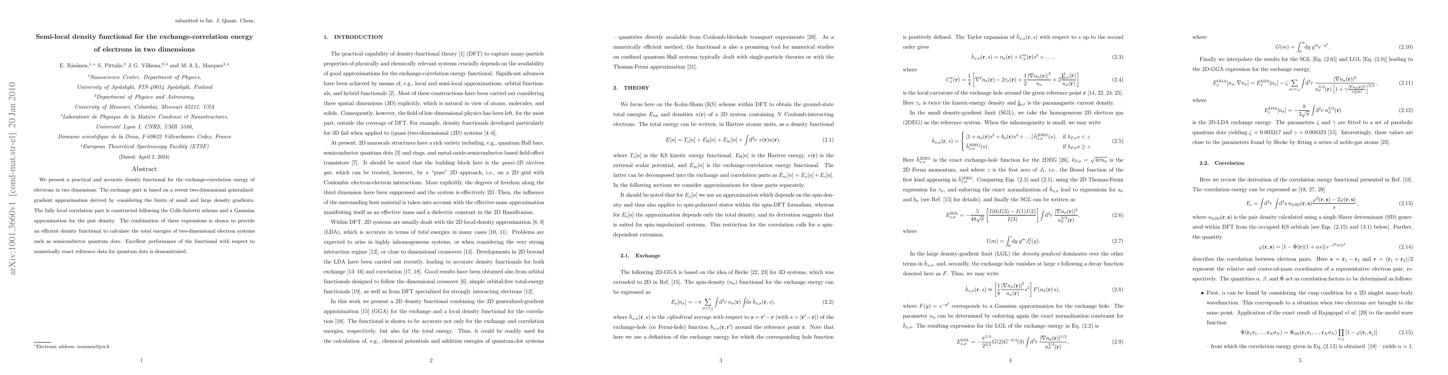 This paper introduces a semi-local density functional combining a two-dimensional generalized-gradient approximation for exchange and a Gaussian approximation for correlation, demonstrating accurate calculations of total energies for semiconductor quantum dots. The functional's performance matches numerically exact reference data, showing its efficiency and accuracy.