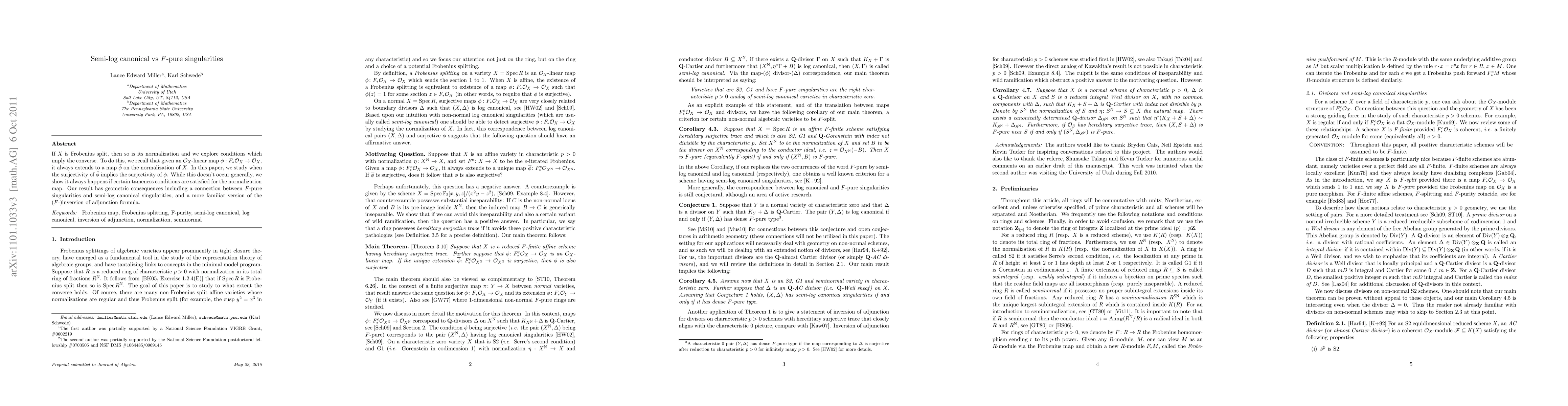 If $X$ is Frobenius split, then so is its normalization and we explore conditions which imply the converse. To do this, we recall that given an $\mathcal{O}_X$-linear map $\phi : F_* \mathcal{O}_X \to \mathcal{O}_X$, it always extends to a map $\bar{\phi}$ on the normalization of $X$. In this paper, we study when the surjectivity of $\bar{\phi}$ implies the surjectivity of $\phi$. While this doesn't occur generally, we show it always happens if certain tameness conditions are satisfied for the normalization map. Our result has geometric consequences including a connection between $F$-pure singularities and semi-log canonical singularities, and a more familiar version of the ($F$-)inversion of adjunction formula.