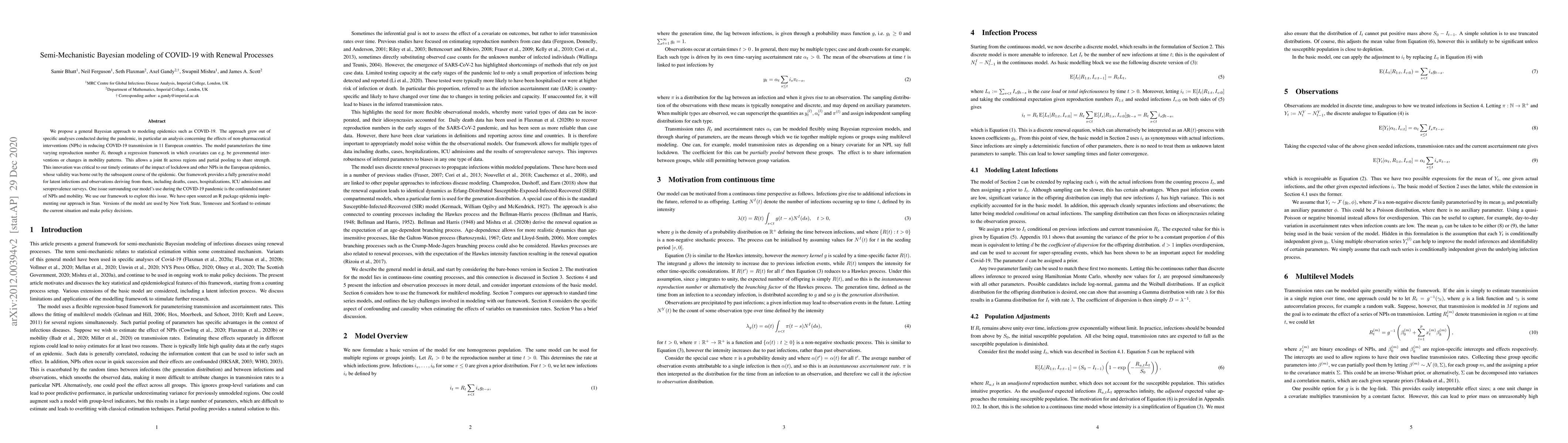 We propose a general Bayesian approach to modeling epidemics such as COVID-19. The approach grew out of specific analyses conducted during the pandemic, in particular an analysis concerning the effects of non-pharmaceutical interventions (NPIs) in reducing COVID-19 transmission in 11 European countries. The model parameterizes the time varying reproduction number $R_t$ through a regression framework in which covariates can e.g be governmental interventions or changes in mobility patterns. This allows a joint fit across regions and partial pooling to share strength. This innovation was critical to our timely estimates of the impact of lockdown and other NPIs in the European epidemics, whose validity was borne out by the subsequent course of the epidemic. Our framework provides a fully generative model for latent infections and observations deriving from them, including deaths, cases, hospitalizations, ICU admissions and seroprevalence surveys. One issue surrounding our model's use during the COVID-19 pandemic is the confounded nature of NPIs and mobility. We use our framework to explore this issue. We have open sourced an R package epidemia implementing our approach in Stan. Versions of the model are used by New York State, Tennessee and Scotland to estimate the current situation and make policy decisions.