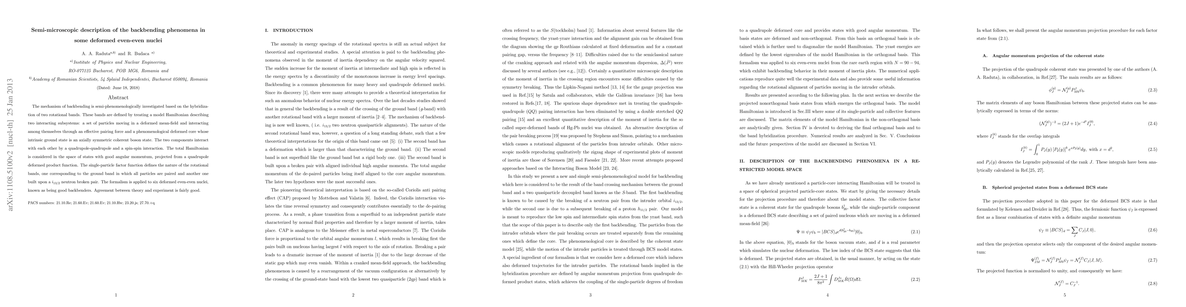 This paper investigates the backbending phenomenon in deformed even-even nuclei using a semi-phenomenological approach that combines two rotational bands. The study applies a hybrid model to describe interactions between paired particles and a deformed core, showing good agreement with experimental data for six selected nuclei.