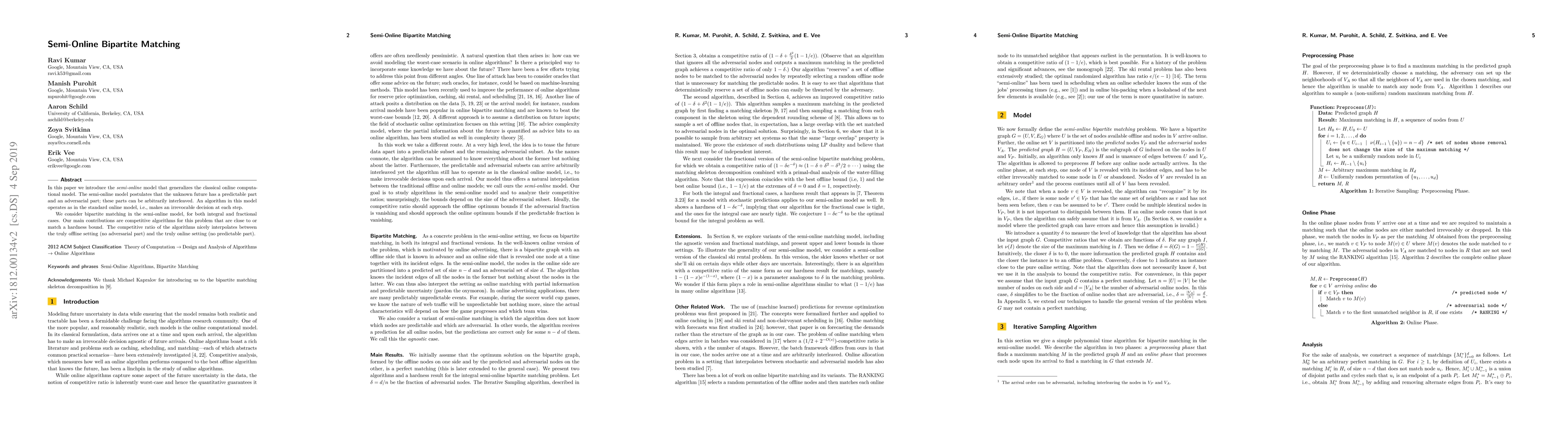 In this paper we introduce the \emph{semi-online} model that generalizes the classical online computational model. The semi-online model postulates that the unknown future has a predictable part and an adversarial part; these parts can be arbitrarily interleaved. An algorithm in this model operates as in the standard online model, i.e., makes an irrevocable decision at each step. We consider bipartite matching in the semi-online model, for both integral and fractional cases. Our main contributions are competitive algorithms for this problem that are close to or match a hardness bound. The competitive ratio of the algorithms nicely interpolates between the truly offline setting (no adversarial part) and the truly online setting (no predictable part).