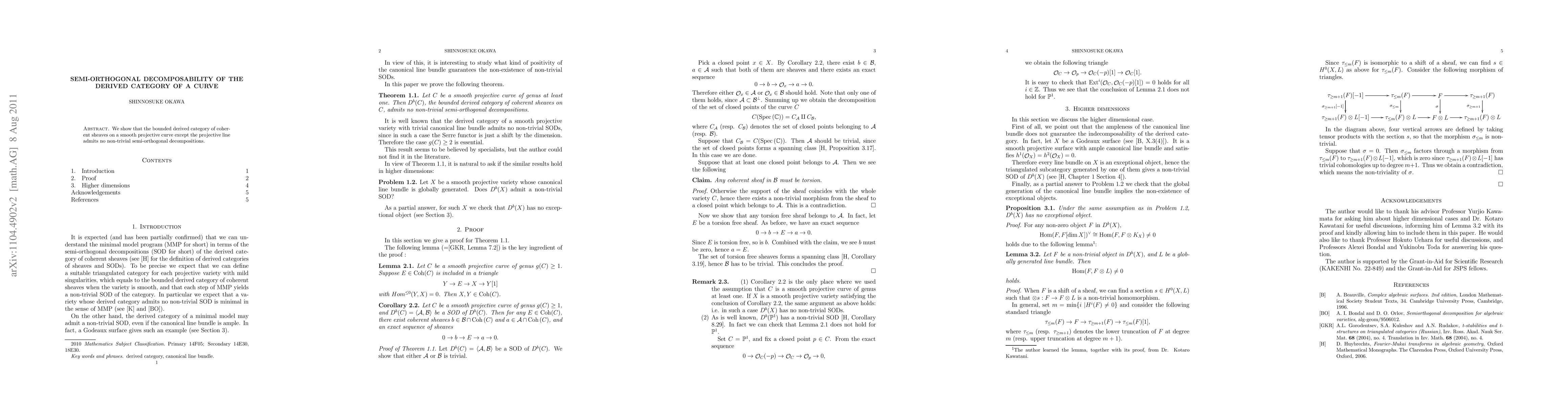 Summary: The research demonstrates that the derived category of coherent sheaves on a smooth projective curve, excluding the projective line, does not support any non-trivial semi-orthogonal decompositions. This finding highlights the unique structure of these categories.