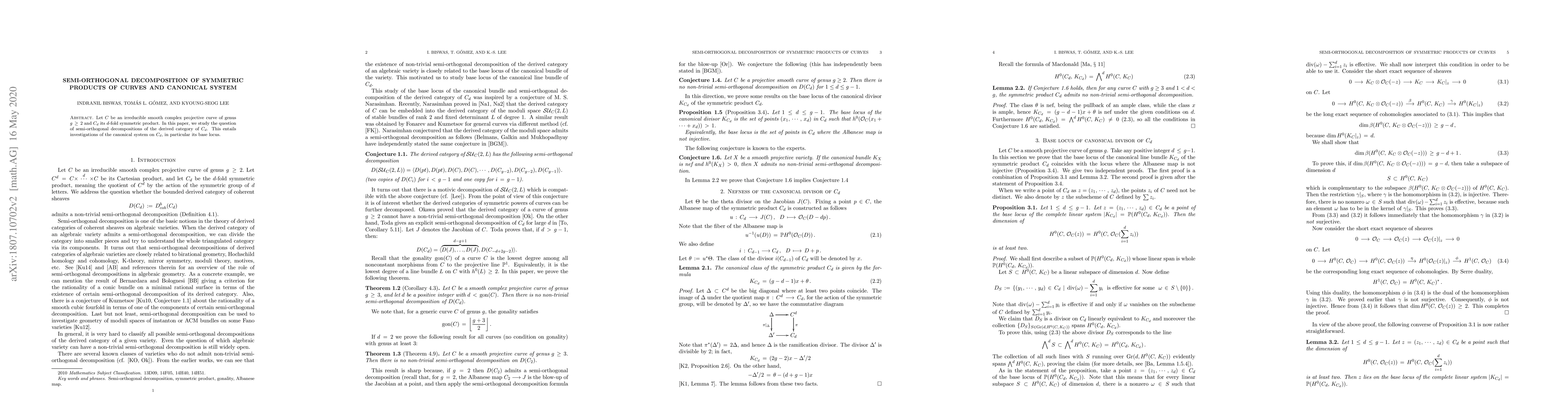 Let $C$ be a smooth complex projective curve of genus $g \,\geq\, 2$ and $C_d$ its $d$-fold symmetric product. In this paper, we study the question of semi-orthogonal decomposition of the derived category of $C_d$. This entails investigations of the canonical system on $C_d$, in particular its base locus.