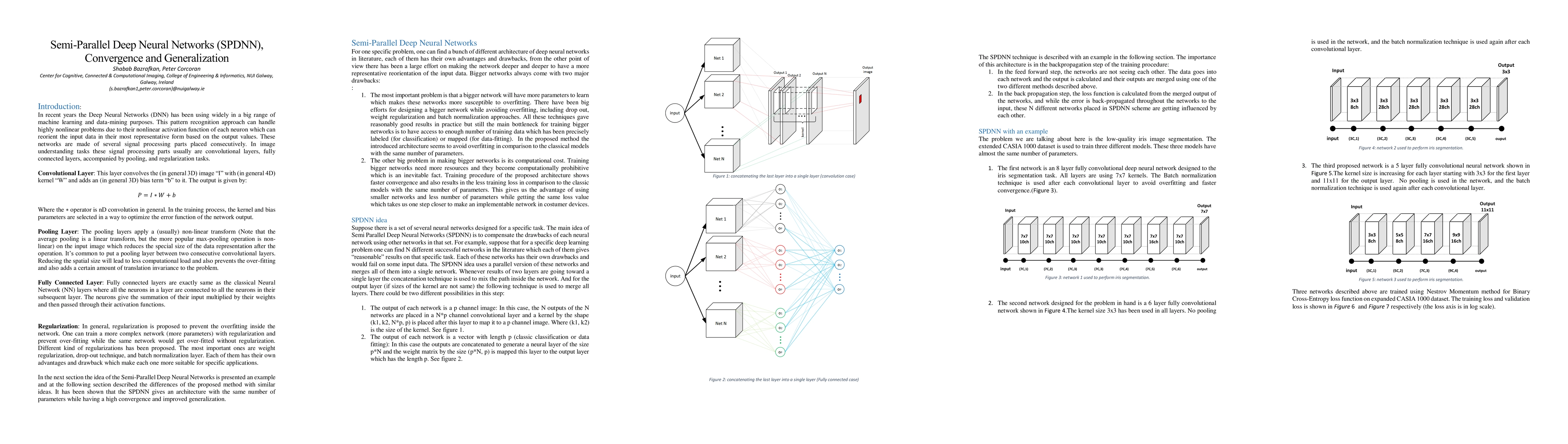Summary: This paper introduces the Semi-Parallel Deep Neural Network (SPDNN) and demonstrates its convergence performance, which is nearly as good as the best network, while also showing superior generalization capabilities compared to its parent networks.