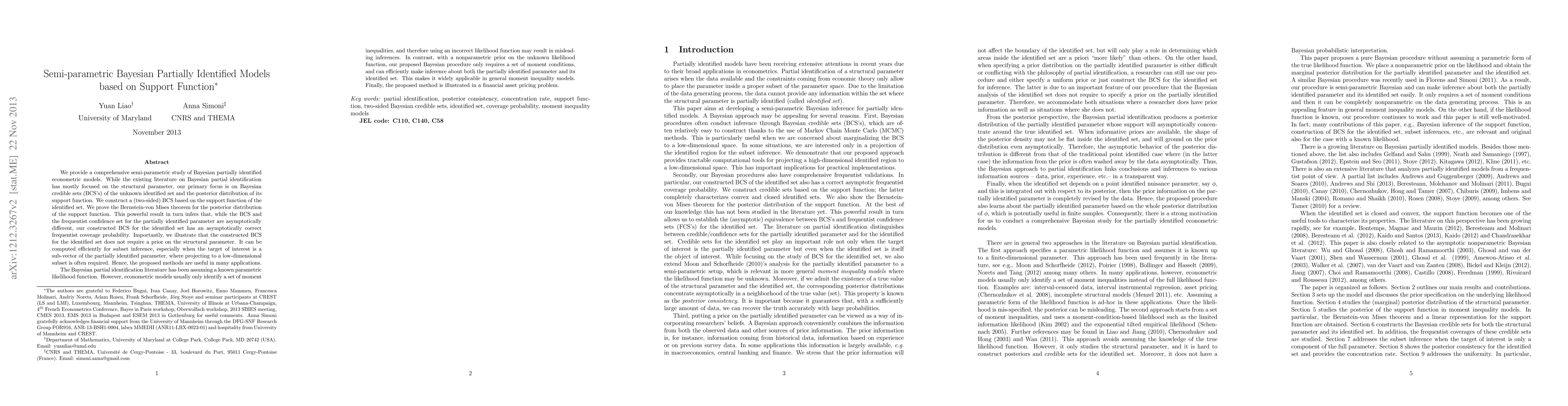 A semi-parametric Bayesian approach is proposed for inference about partially identified models.