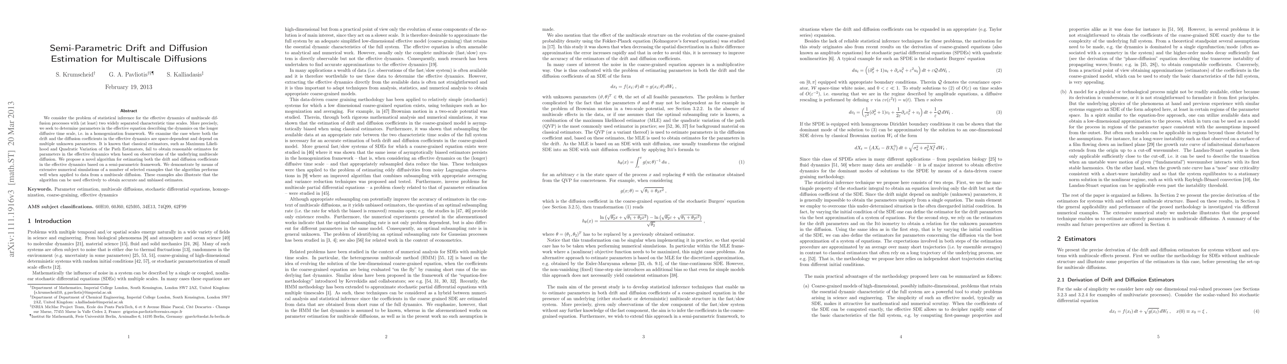 Researchers propose a new algorithm for estimating parameters in multiscale diffusion processes, which perform well on extensive numerical simulations and provide accurate estimates.