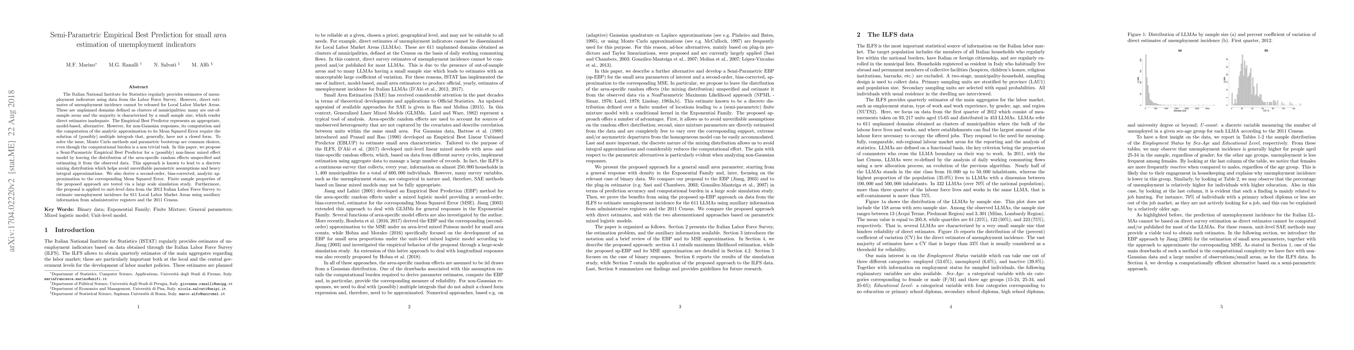 This paper proposes a Semi-Parametric Empirical Best Predictor for small area estimation of unemployment indicators, using a mixed effect model that avoids unverifiable parametric assumptions. It provides a second-order, bias-corrected approximation to Mean Squared Error and demonstrates its effectiveness through simulations and an application to Italian Labor Force Survey data.