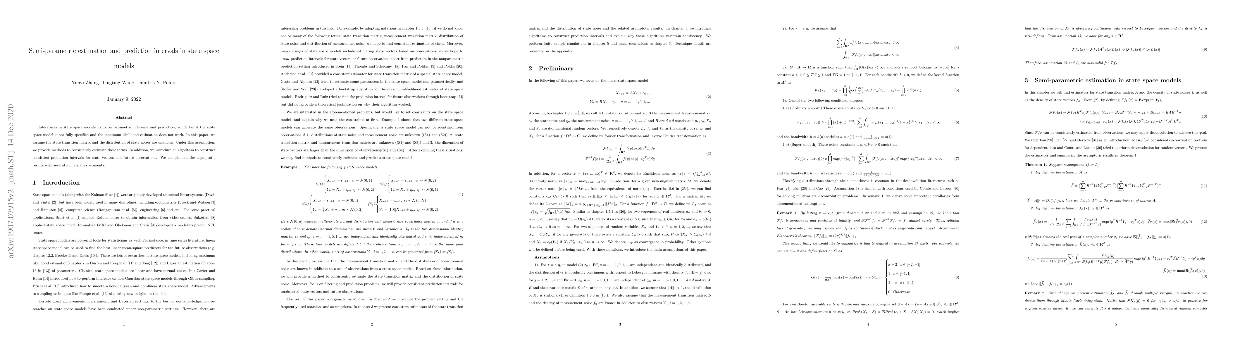 Literatures in state space models focus on parametric inference and prediction, which fail if the state space model is not fully specified and the maximum likelihood estimation does not work. In this paper, we assume the state transition matrix and the distribution of state noises are unknown. Under this assumption, we provide methods to consistently estimate these terms. In addition, we introduce an algorithm to construct consistent prediction intervals for state vectors and future observations. We complement the asymptotic results with several numerical experiments.