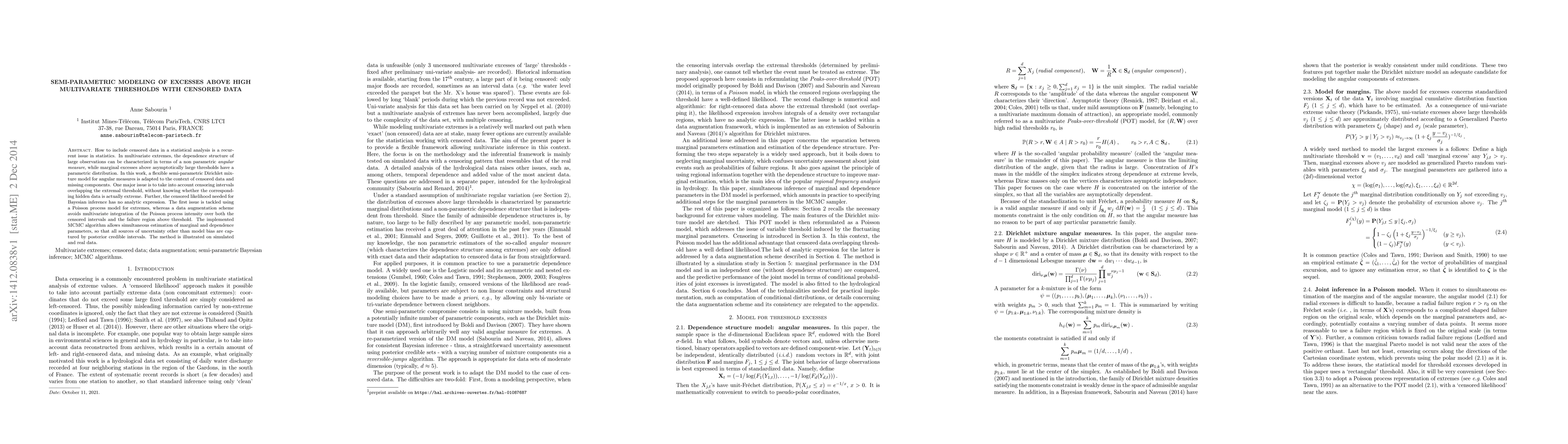 This paper proposes a semi-parametric Dirichlet mixture model to analyze multivariate excesses above high thresholds, incorporating censored data using a Poisson process model and a data augmentation scheme for Bayesian inference. The method is demonstrated through simulated and real data, capturing uncertainties in parameter estimation.