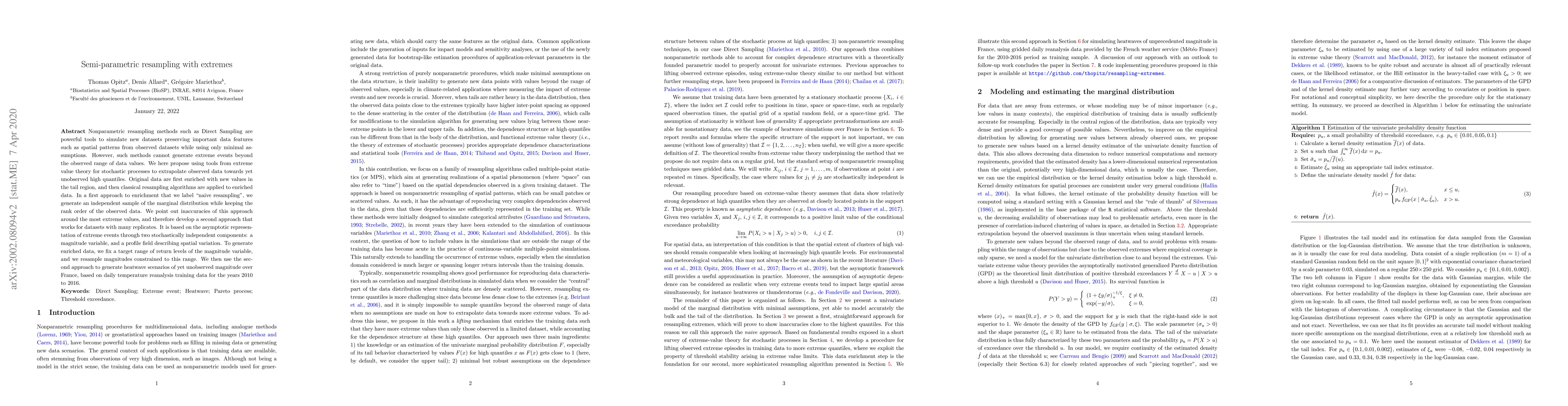 Researchers propose a new method to generate extreme events in simulated datasets by combining classical resampling with tools from extreme value theory, allowing for the extrapolation of unobserved high quantiles.