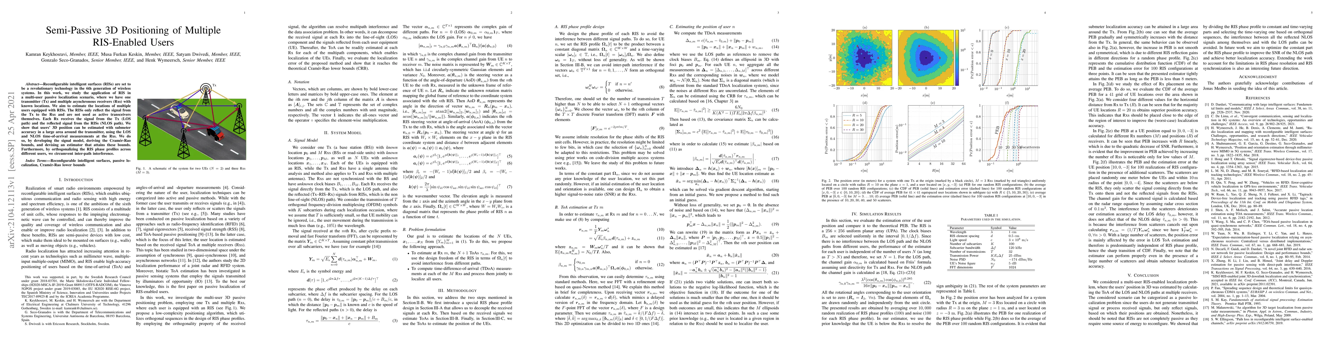 The paper presents a novel method for semi-passive 3D positioning of multiple RIS-enabled users, developing a signal model, deriving Cramer-Rao bounds, and devising an estimator that achieves these bounds while avoiding inter-path interference.