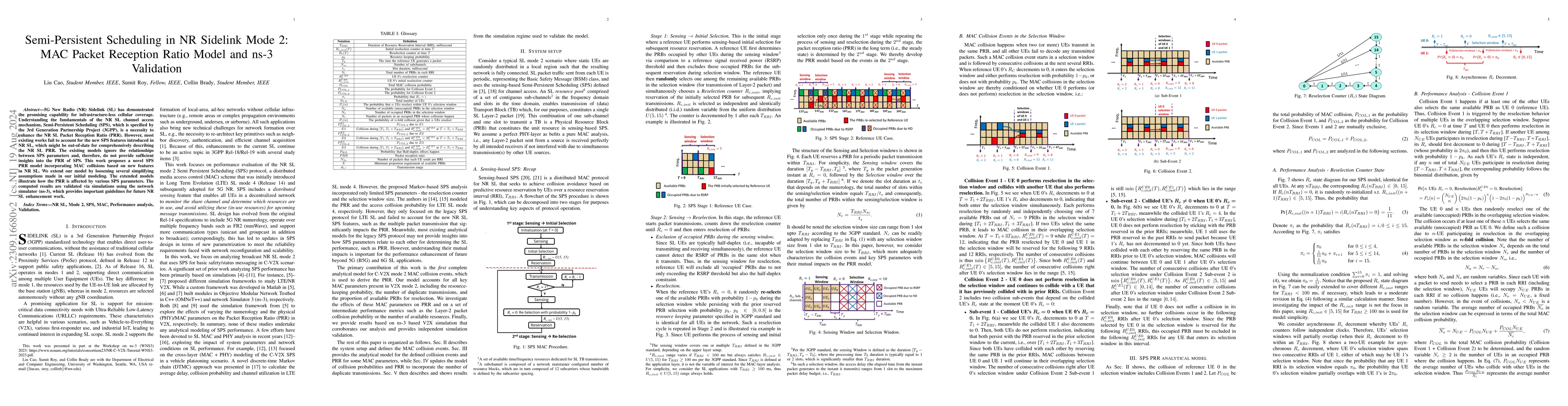 5G NR Sidelink (SL) has demonstrated the promising capability for infrastructure-less cellular coverage. Understanding the fundamentals of the NR SL channel access mechanism, Semi-Persistent Scheduling (SPS), which is specified by the 3rd Generation Partnership Project (3GPP), is a necessity to enhance the NR SL Packet Reception Ratio (PRR). However, most existing works fail to account for the new SPS features introduced in NR SL, which might be out-of-date for comprehensively describing the NR SL PRR. The existing models ignore the relationships between SPS parameters and therefore do not provide sufficient insights into the PRR of SPS. This work proposes a novel SPS PRR model incorporating MAC collisions based on new features in NR SL. We extend our model by loosening several simplifying assumptions made in our initial modeling. The extended models illustrate how the PRR is affected by various SPS parameters. The computed results are validated via simulations using the network simulator (ns-3), which provides important guidelines for future NR SL enhancement work.
