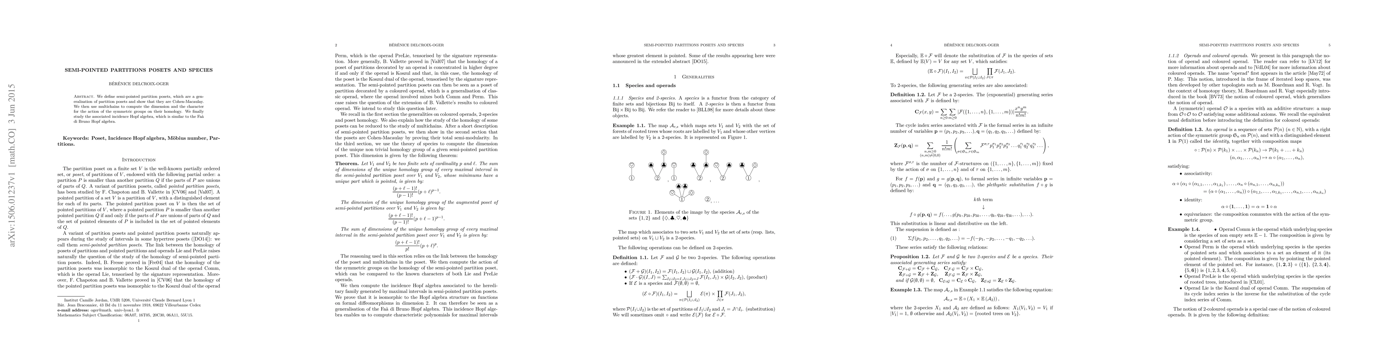 The research defines semi-pointed partition posets as a generalization of partition posets and proves their Cohen-Macaulay nature. It uses multichains to compute dimensions and characters for symmetric group actions on homology, and examines the associated incidence Hopf algebra, which is similar to the Faà di Bruno Hopf algebra.
