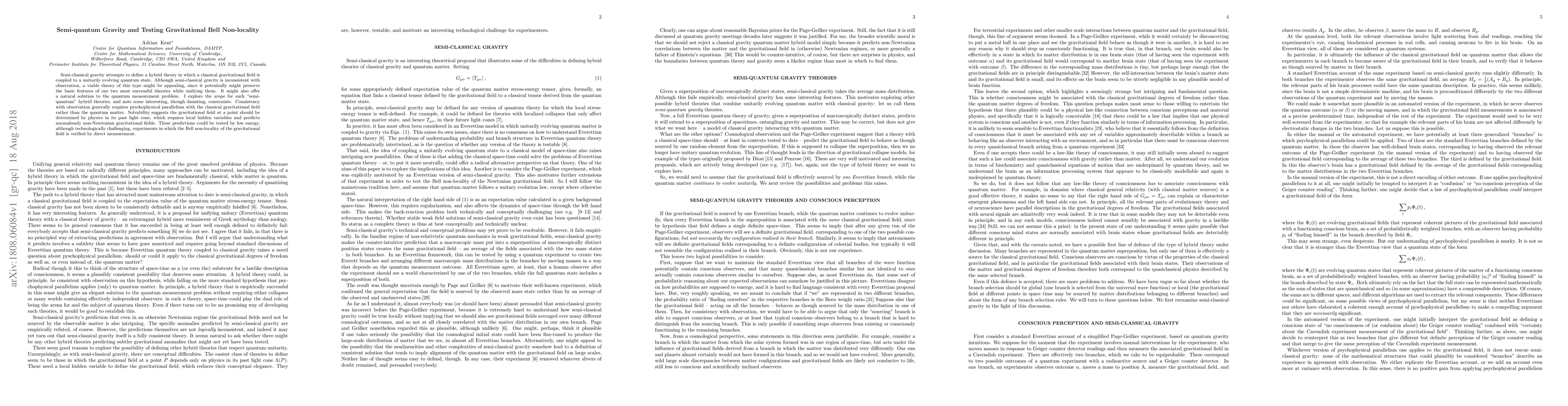 Semi-classical gravity attempts to define a hybrid theory in which a classical gravitational field is coupled to a unitarily evolving quantum state. Although semi-classical gravity is inconsistent with observation, a viable theory of this type might be appealing, since it potentially might preserve the basic features of our two most successful theories while unifying them. It might also offer a natural solution to the quantum measurement problem. I explore the scope for such "semi-quantum" hybrid theories, and note some interesting, though daunting, constraints. Consistency with observation generally requires pyschophysical parallelism with the classical gravitational field rather than the quantum matter. Solvability suggests the gravitational field at a point should be determined by physics in its past light cone, which requires local hidden variables and predicts anomalously non-Newtonian gravitational fields. These predictions could be tested by low energy, although technologically challenging, experiments in which the Bell non-locality of the gravitational field is verified by direct measurement.