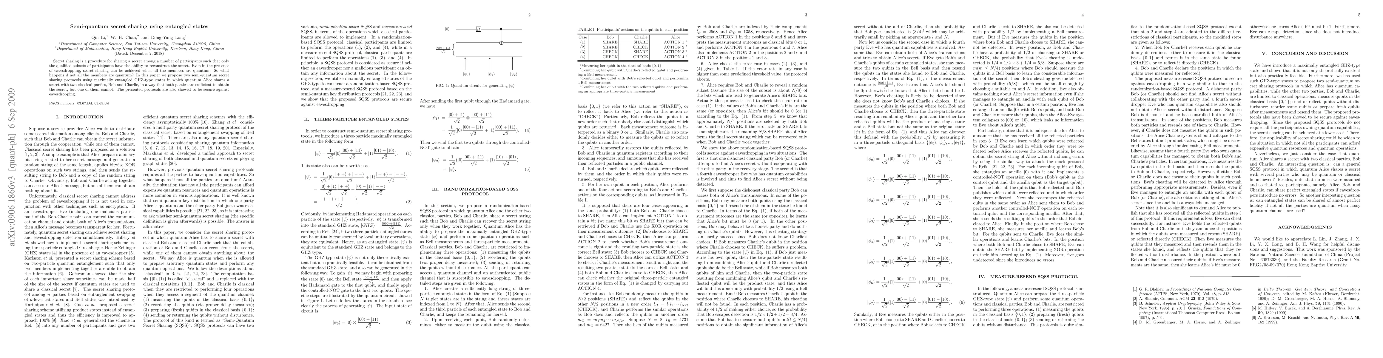 This paper proposes two semi-quantum secret sharing protocols using entangled GHZ-type states, allowing quantum Alice to share a secret with classical parties Bob and Charlie, ensuring that both can reconstruct the secret but not individually, while maintaining security against eavesdropping.