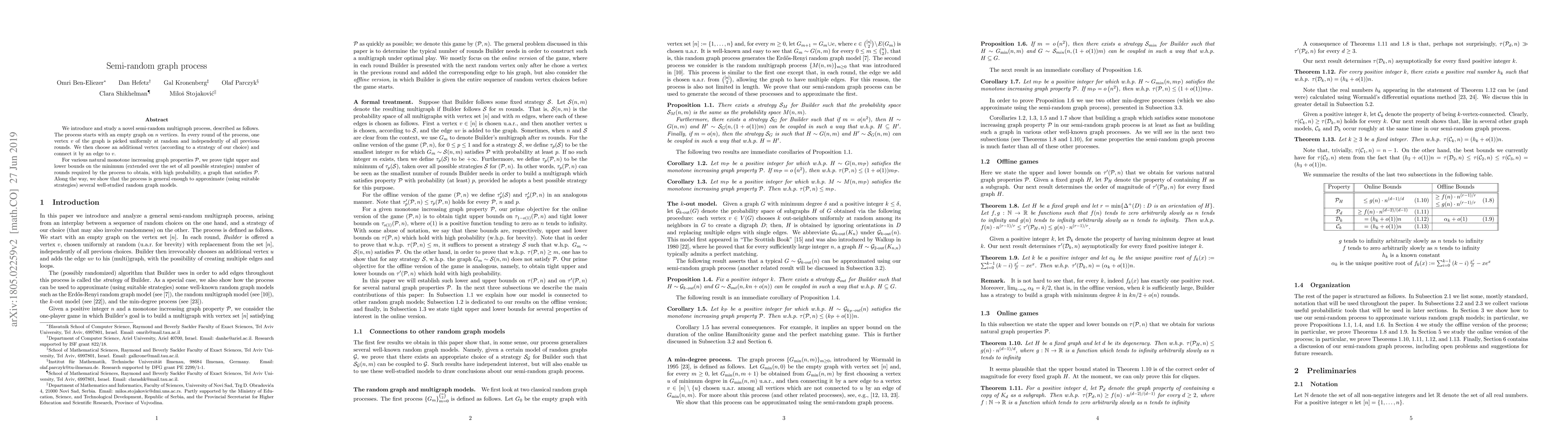 This paper introduces a semi-random graph process that builds graphs incrementally, requiring a minimum of rounds to achieve certain properties with high probability. It also shows the process can approximate well-studied random graph models using suitable strategies.