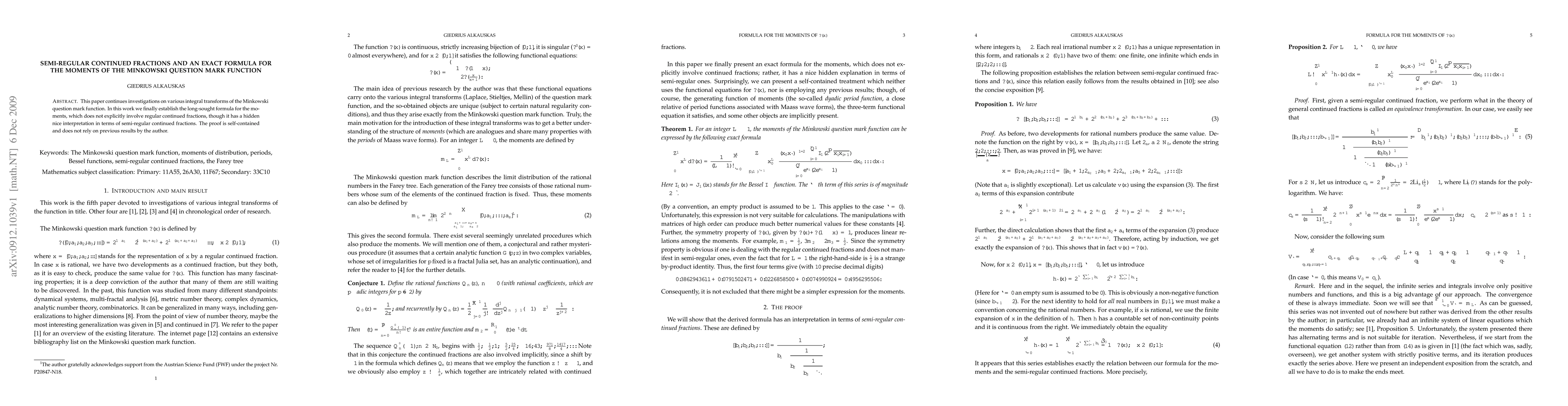 This paper presents a new exact formula for the moments of the Minkowski question mark function, derived without using regular continued fractions, but interpreted through semi-regular continued fractions. The proof is self-contained and independent of previous results.