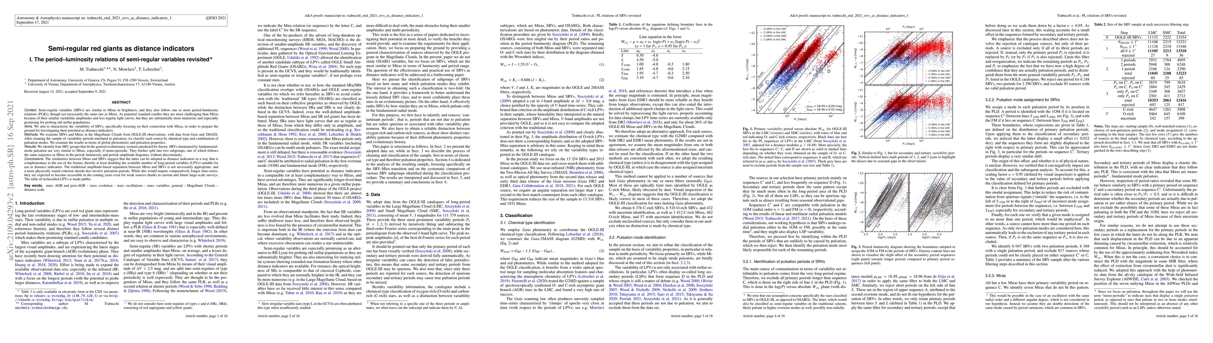 Semi-regular red giants (SRVs) have similar properties to Miras, making them potential distance indicators, offering an alternative or complementary method to Miras for probing old stellar populations.