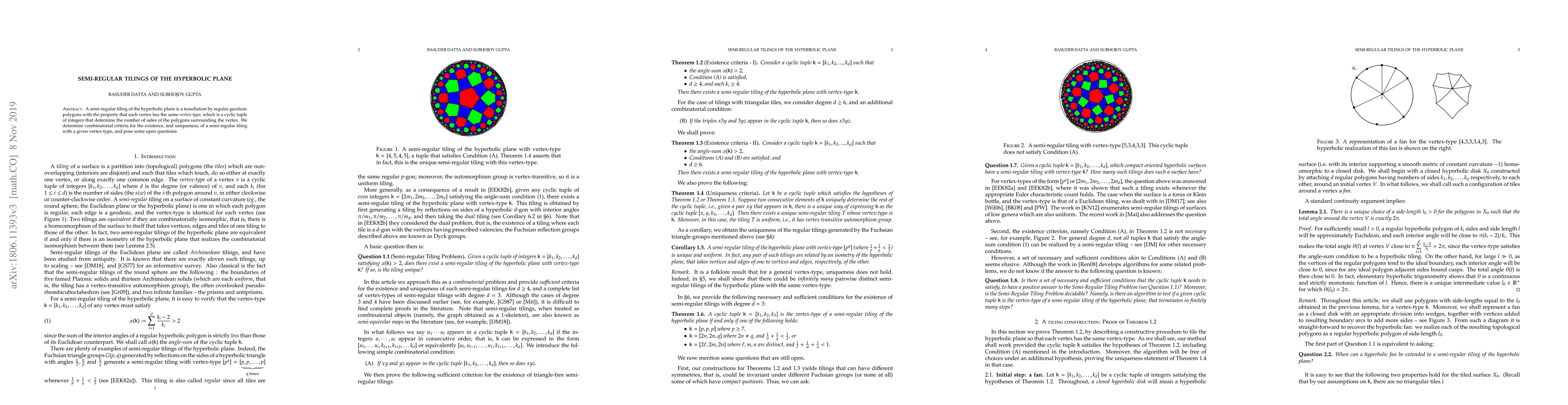 This paper explores semi-regular tilings of the hyperbolic plane, establishing criteria for their existence and uniqueness based on vertex-type, and raises further questions for future research. Open questions remain regarding the broader implications and potential extensions of these findings.