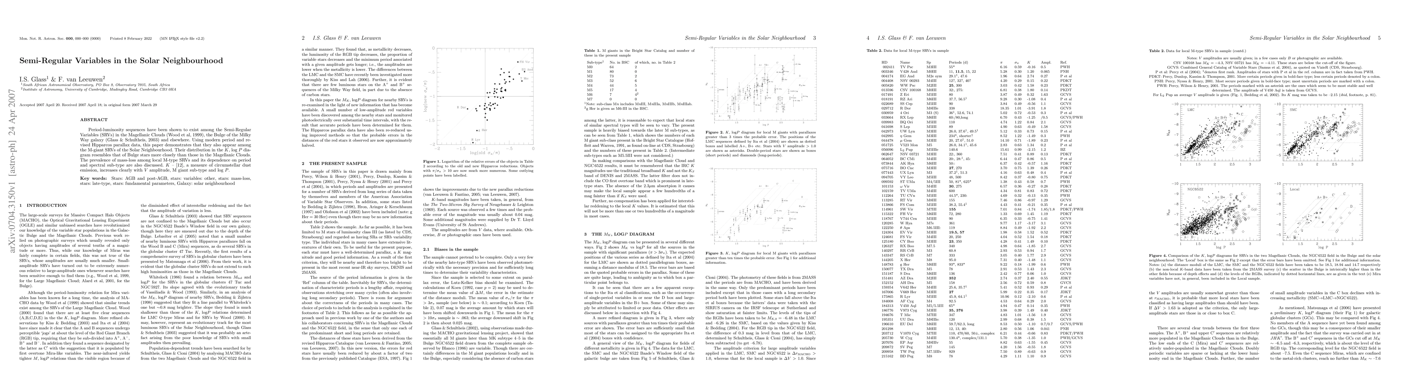 This paper identifies period-luminosity sequences among M-giant Semi-Regular Variables (SRVs) in the Solar Neighbourhood, showing their distribution in the K, log P diagram is more similar to Bulge stars than Magellanic Cloud stars. The study also discusses the prevalence of mass-loss in these local SRVs, which correlates with period, spectral sub-type, and circumstellar dust emission.
