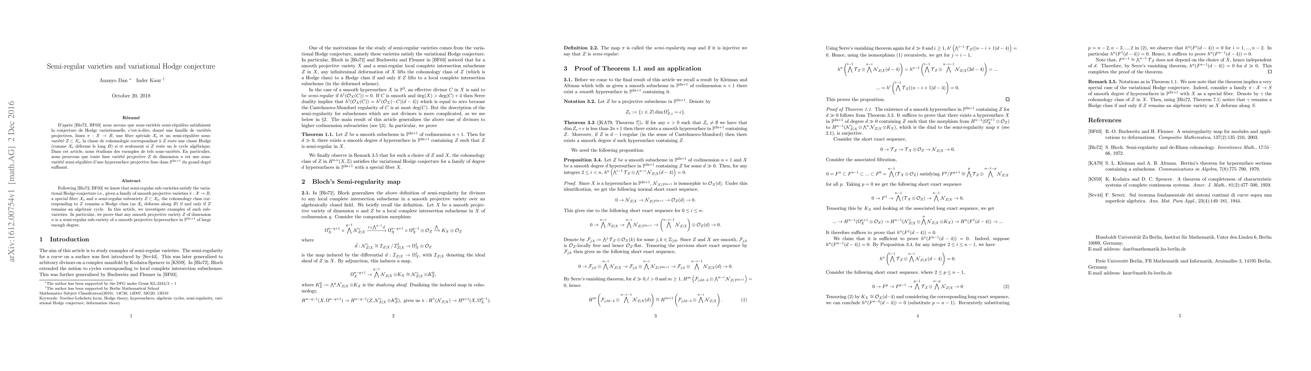 This paper explores semi-regular sub-varieties and confirms the variational Hodge conjecture for them, proving that any smooth projective variety can be a sub-variety of a sufficiently high-degree smooth hypersurface in projective space.