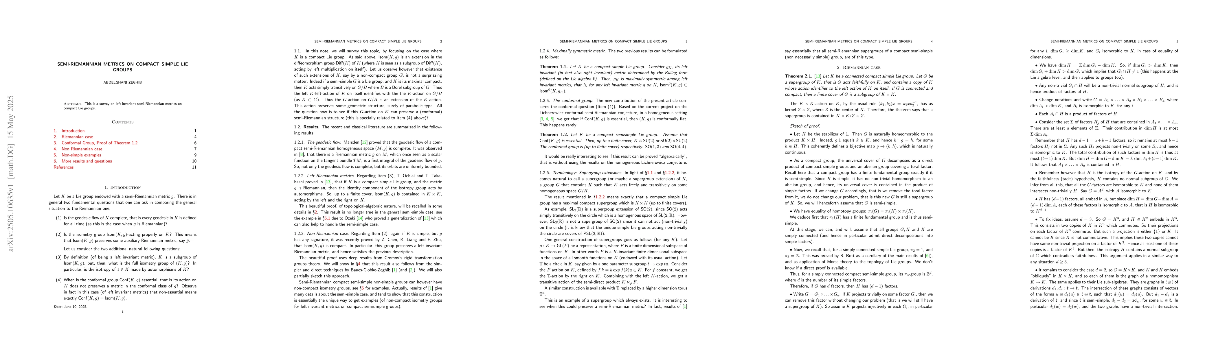 The research primarily involves a comprehensive survey of left-invariant semi-Riemannian metrics on compact simple Lie groups, examining their properties and applications.
